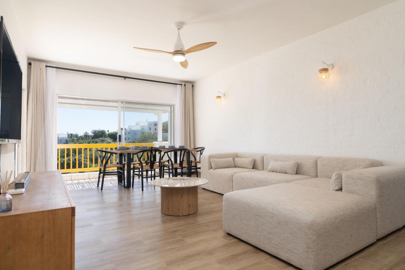 Three-Bedroom Apartment. Featuring 3 bedrooms and 2 bathrooms with a shower, this spacious apartment offers a seating area and private poolyou can relax. The well-equipped kitchen features a stovetop, a refrigerator, a dishwasher and kitchenware. Boasting a balcony with sea views, this apartment also provides a washing machine and a flat-screen TV. The unit has 4 beds.