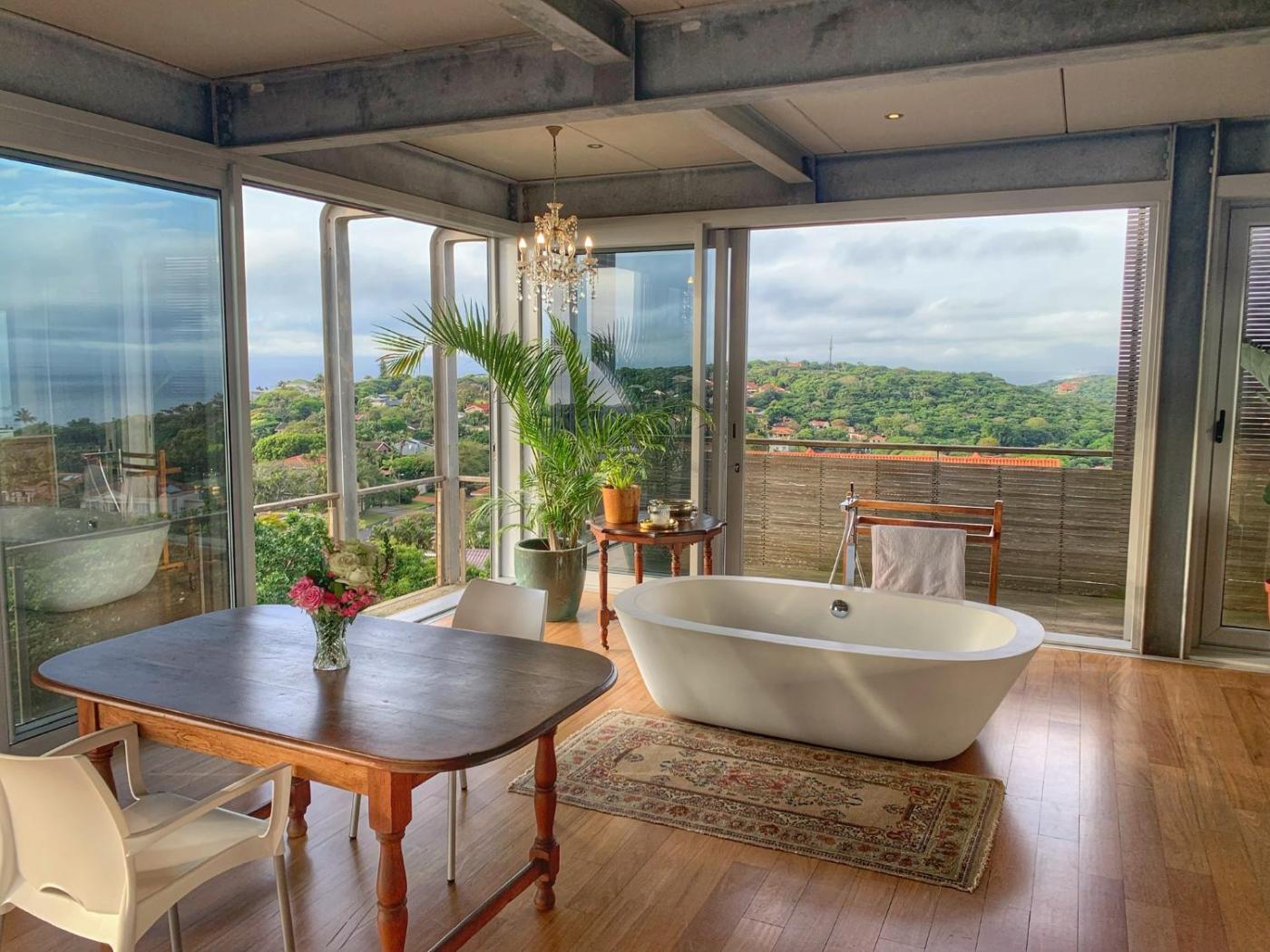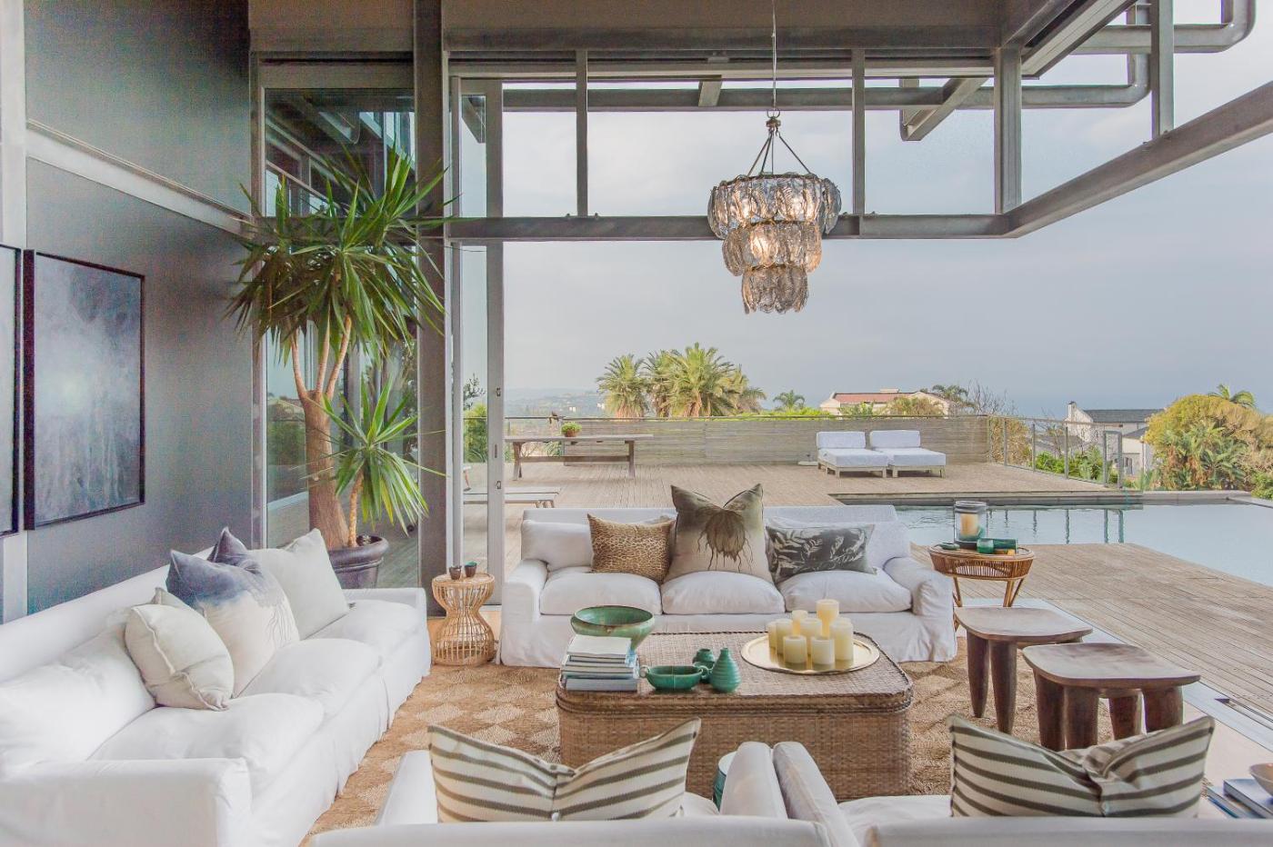 Located in Ballito, The Seaglass Bed and Breakfast boasts panoramic views, luxury rooms and a 25 metre outdoor pool. This contemporary steel and glass home is suspended masterfully between sea and sky, maximising breath-taking views from the Durban harbour to the Tugela Mouth.