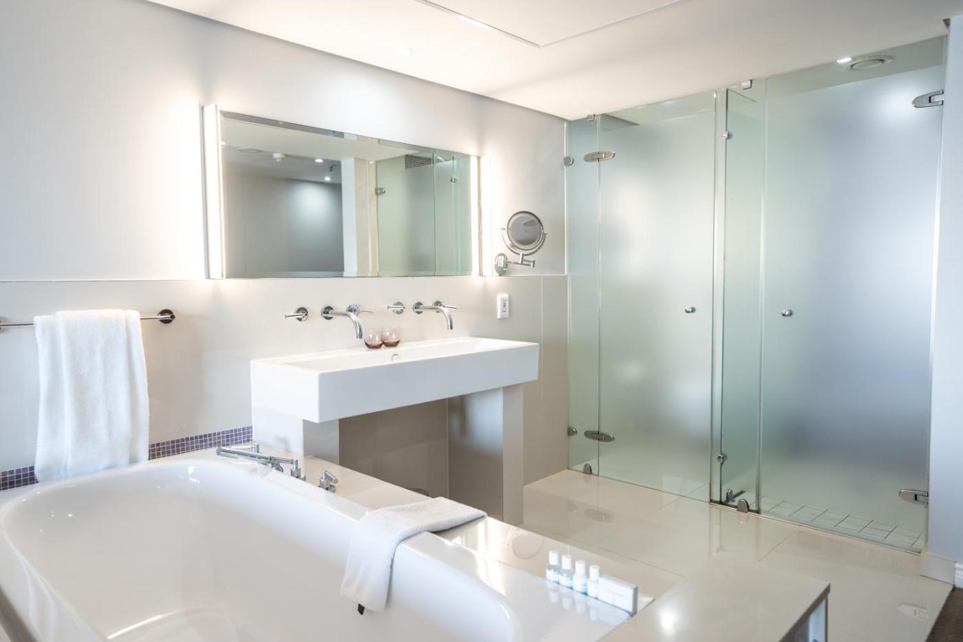 Sea-Facing Robben Island Twin Room. Offering free toiletries and bathrobes, this twin room includes a private bathroom with a walk-in shower, a bath and a hairdryer. The spacious air-conditioned twin room offers a flat-screen TV with satellite channels, a private entrance, a minibar, a tea and coffee maker as well as sea views. The unit offers 2 beds. ;