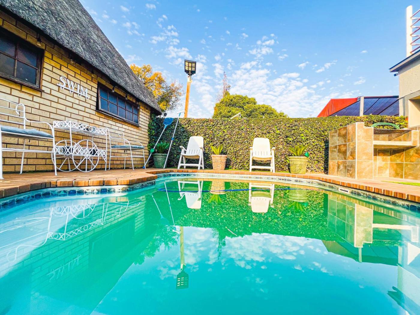 Featuring an outdoor swimming pool and views of garden, Rest Inn C Guesthouse - 10min from OR Tambo Airport is a recently renovated guest housein Boksburg, 14 km from Saps Mechanical School Golf Club. This property offers access to a terrace, free private parking and free WiFi. Boasting family rooms, this property also provides guests with an outdoor fireplace.