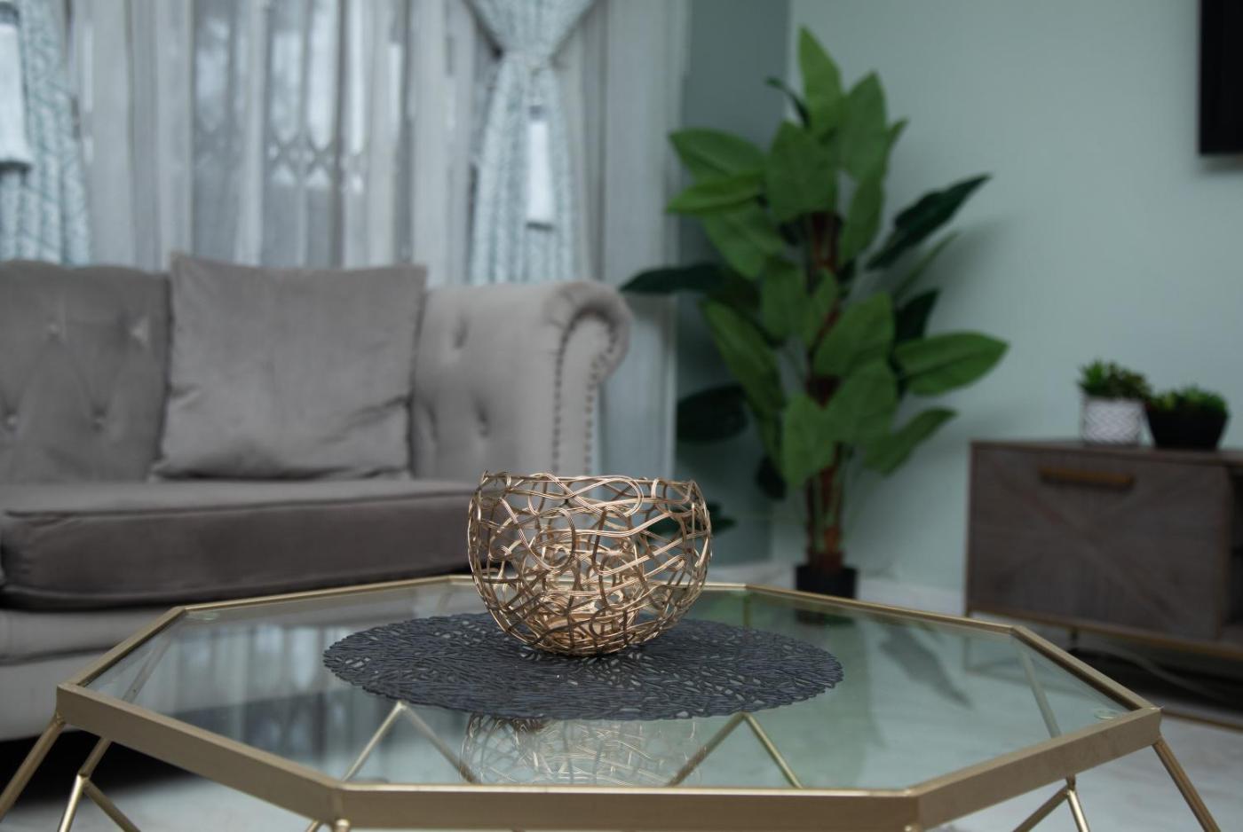 Four-Bedroom Holiday Home. Guests will have a special experience as the holiday home features a private pool. Featuring a private entrance, this air-conditioned holiday home consists of 1 living room, 4 separate bedrooms and 3 bathrooms with a bath and a shower. The well-equipped kitchen features a stovetop, a refrigerator, kitchenware and an oven. The spacious holiday home provides a washing machine, a tea and coffee maker, a seating area, a flat-screen TV with streaming services, as well as garden views. The unit offers 6 beds.