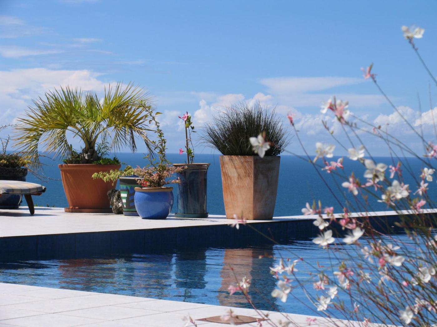 Guests can enjoy a generous buffet breakfast on the quiet terrace by the pool overlooking the sea or in the airy dining room.