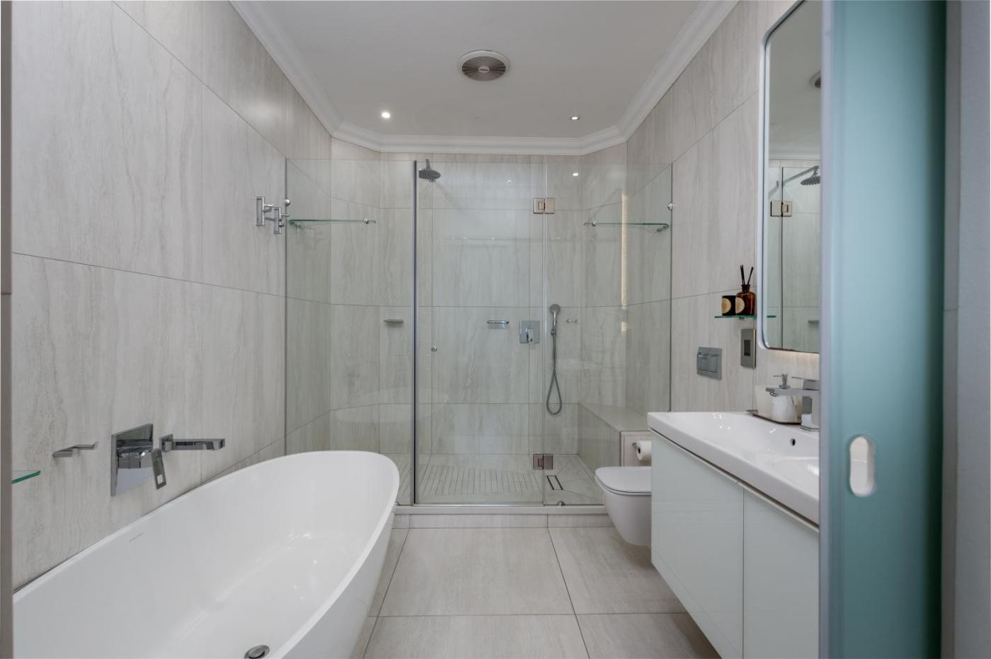 Three-Bedroom Apartment. Boasting a private entrance, this air-conditioned apartment comes with 1 living room, 3 separate bedrooms and 3 bathrooms with a bath and a shower. Guests will find a stovetop, a refrigerator, a dishwasher and kitchenware in the well-fitted kitchen. The apartment also includes a barbecue. The spacious apartment features a washing machine, a seating area, a dining area, a flat-screen TV, as well as sea views. The unit has 4 beds.