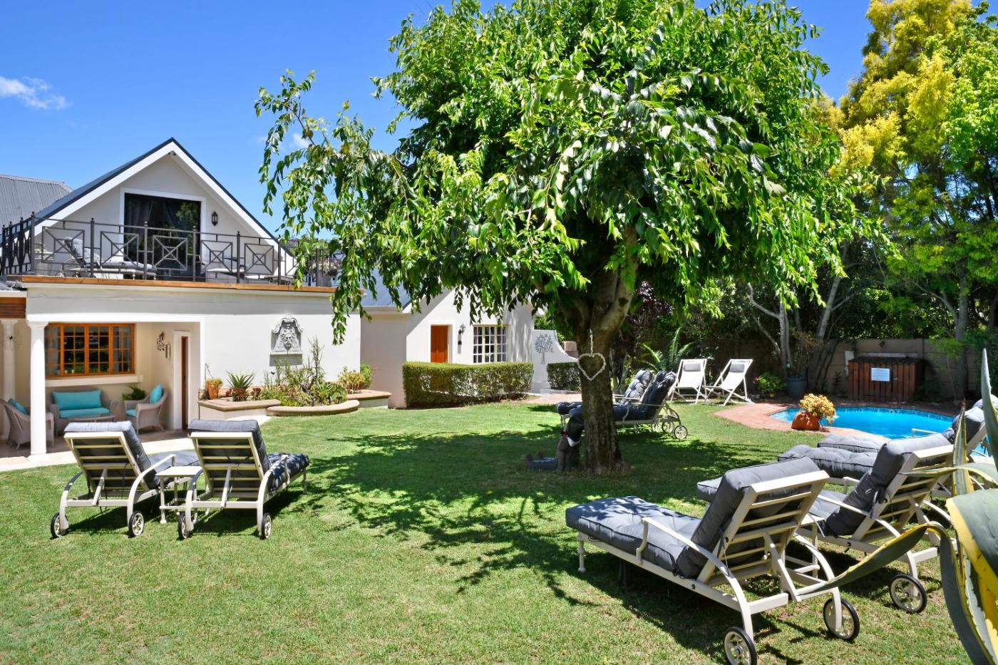 Situated in the village of Franschhoek, this guesthouse is 50 metres away from the Huguenot Monument and Museum. It features spacious rooms, an outdoor pool and a garden.