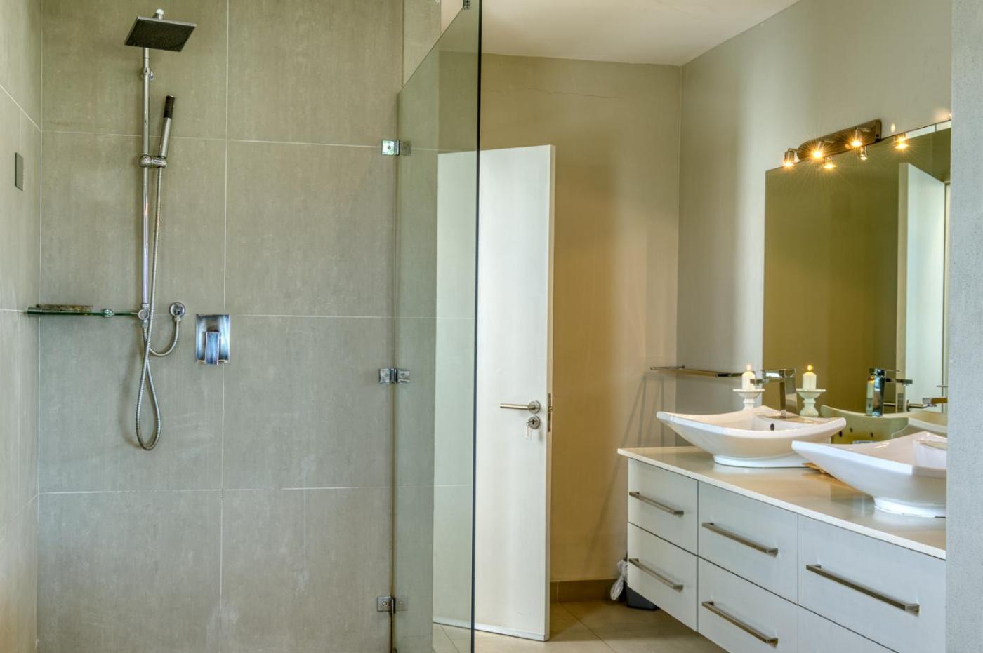 Three-Bedroom Villa. Featuring a private entrance, this air-conditioned villa comprises 2 living rooms, 3 separate bedrooms and 3 bathrooms with a walk-in shower and a bath. Guests will find a stovetop, a refrigerator, a dishwasher and kitchenware in the fully equipped kitchen. The villa also provides guests with a barbecue. The spacious villa provides a flat-screen TV with streaming services, soundproof walls, a tea and coffee maker, a seating area as well as sea views. The unit offers 3 beds.