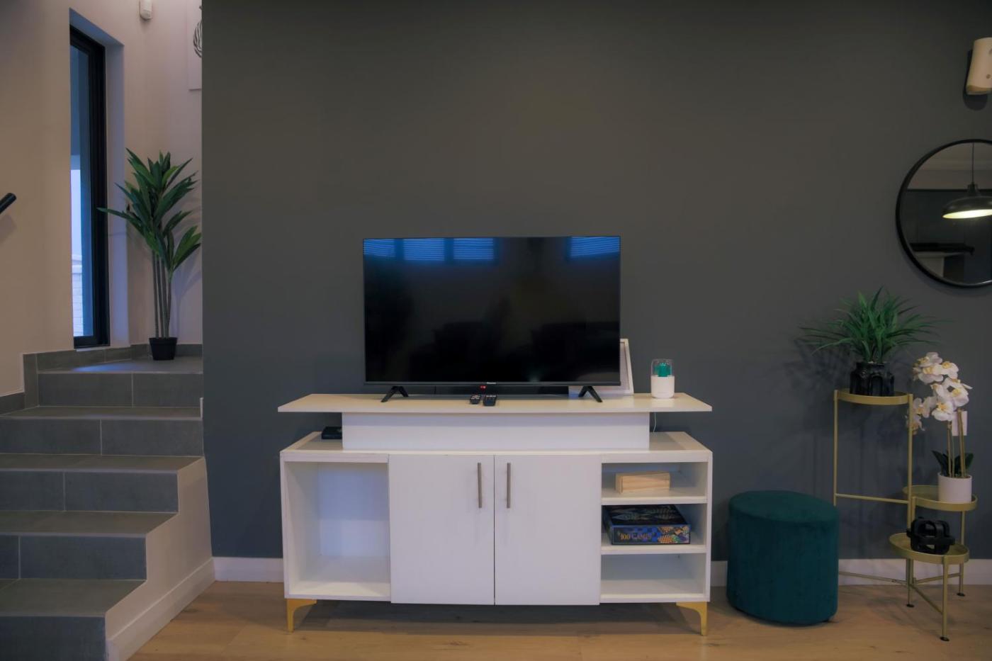 Three-Bedroom House. This holiday home features a fireplace. Boasting a private entrance, this spacious holiday home also features 3 bedrooms, a seating area and 3 bathrooms with a bath and a shower. In the well-equipped kitchen, guests will find a stovetop, a refrigerator, an oven and a microwave. Featuring a terrace, this holiday home also features a washing machine, a tea and coffee maker and a flat-screen TV with streaming services. The unit has 4 beds.