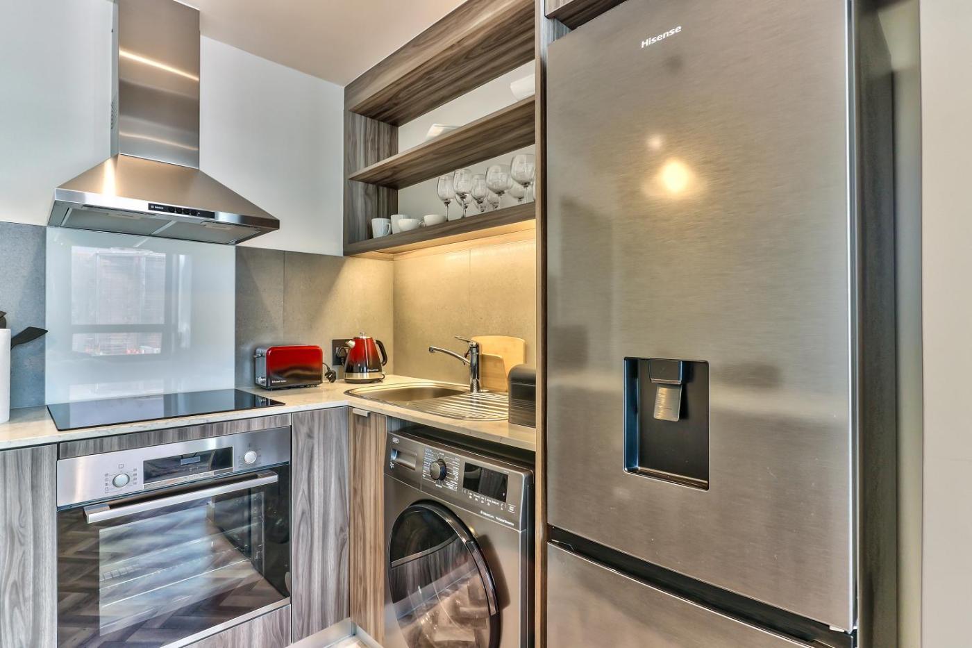 One-Bedroom Apartment. The apartments kitchen is available for cooking and storing food. The air-conditioned apartment features a flat-screen TV, a washing machine, a minibar and heating. The unit has 1 bed.