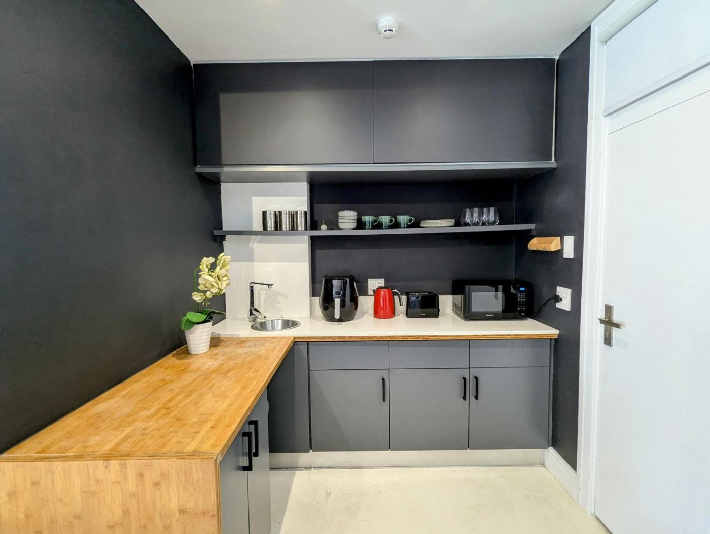 This apartment is equipped with a living room and a fully equipped kitchenette with a microwave and a fridge. A TV is provided.