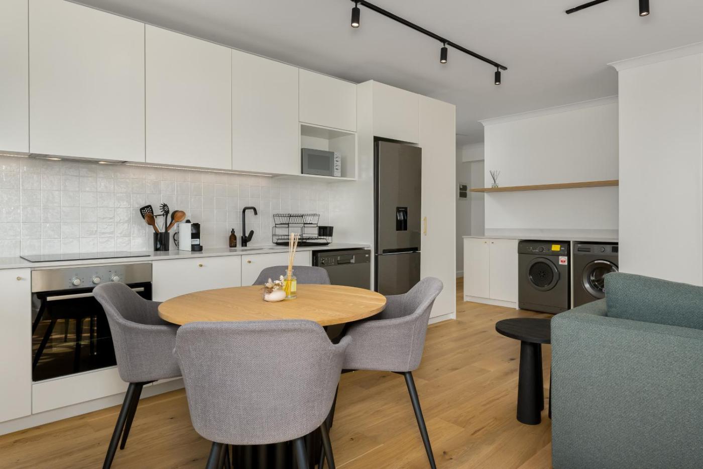 Two-Bedroom Apartment with Balcony. This apartment features a kitchen, a seating area, 2 separate bedrooms and 2 bathrooms with a shower and a hairdryer. Guests can make meals in the kitchen that has a stovetop, a refrigerator, a dishwasher and kitchenware. This apartment has a washing machine, a coffee machine, a flat-screen TV with streaming services and a balcony. The unit has 3 beds. ;