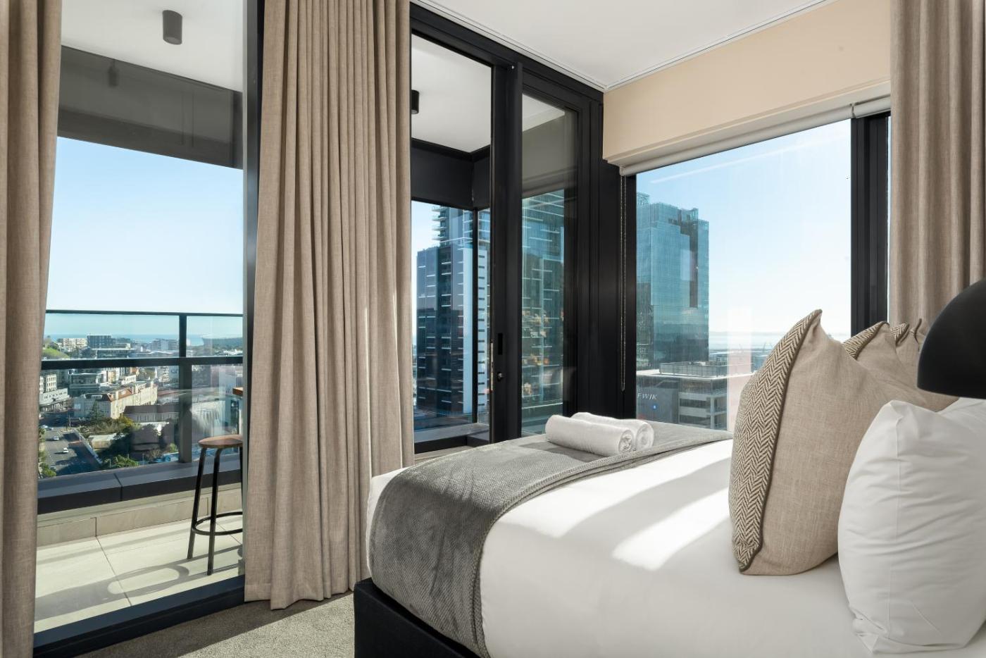 One-Bedroom Apartment. This air-conditioned apartment includes 1 living room, 1 separate bedroom and 1 bathroom with a shower. Guests will find a stovetop, a refrigerator, a dishwasher and kitchenware in the well-fitted kitchen. The apartment also features a barbecue. The apartment offers a flat-screen TV with streaming services, a washing machine, a seating area, a dining area as well as city views. The unit has 1 bed. ;