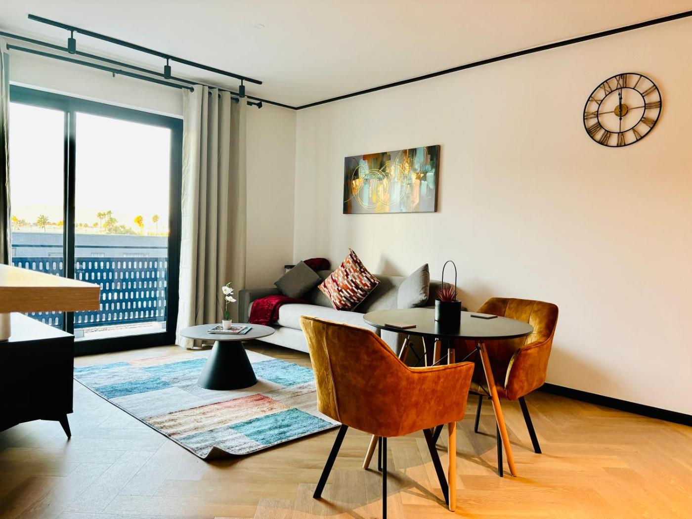Deluxe One-Bedroom Apartment with City View. This apartment features 1 living room, 1 separate bedroom and 1 bathroom with a shower and free toiletries. In the well-equipped kitchen, guests will find a stovetop, a refrigerator, kitchenware and an oven. Boasting a terrace with ancourtyard view, this apartment also features a washing machine and a flat-screen TV. The unit has 2 beds. ;