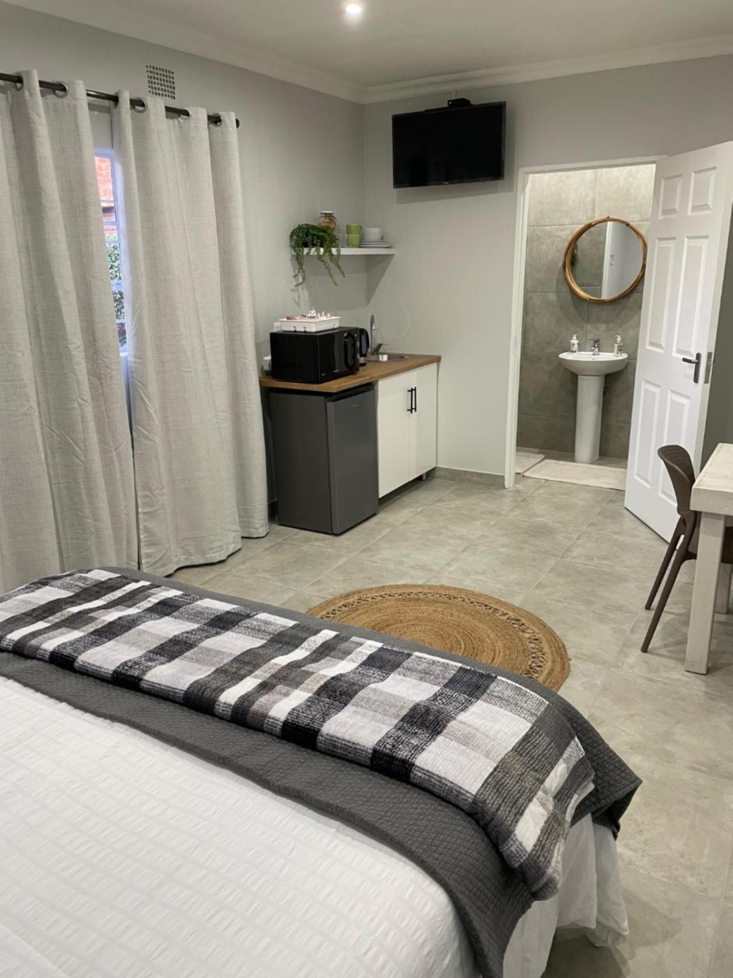 Queen Room. The double room includes a private bathroom fitted with a shower. The double rooms kitchenette, which has a refrigerator and a microwave, is available for cooking and storing food. The spacious air-conditioned double room features a flat-screen TV, a private entrance, an electric kettle, a tiled floor as well as garden views. The unit has 1 bed. ;