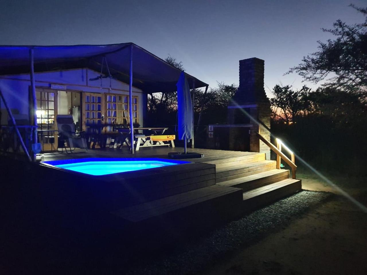 Tent. Guests will have a special experience as this tent offers a pool with a view. Guests can make meals in the kitchen that is fitted with a stovetop, a refrigerator, kitchenware and a microwave. This tent features a private bathroom, a tea and coffee maker, a seating area as well as a patio. The unit offers 1 bed.