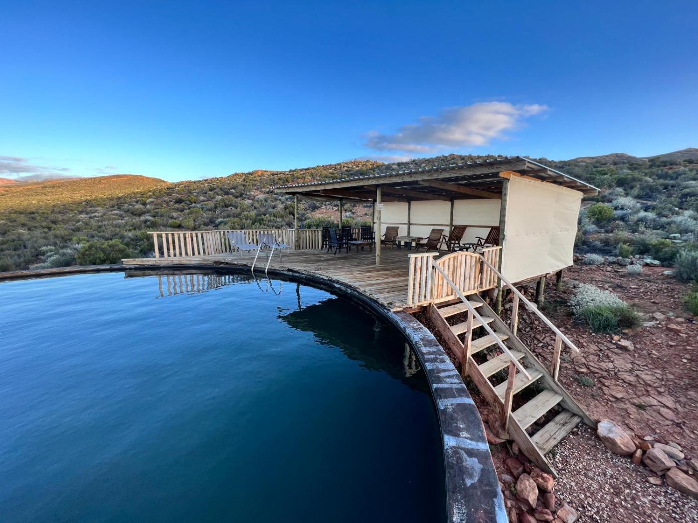 Featuring a garden, private pool and mountain views, Miskloof Farm is located in Matjiesrivier. The property features pool and garden views, and is 23 km from Aquila Private Game Reserve. There is a sun terrace and guests can make use of free WiFi and free private parking.