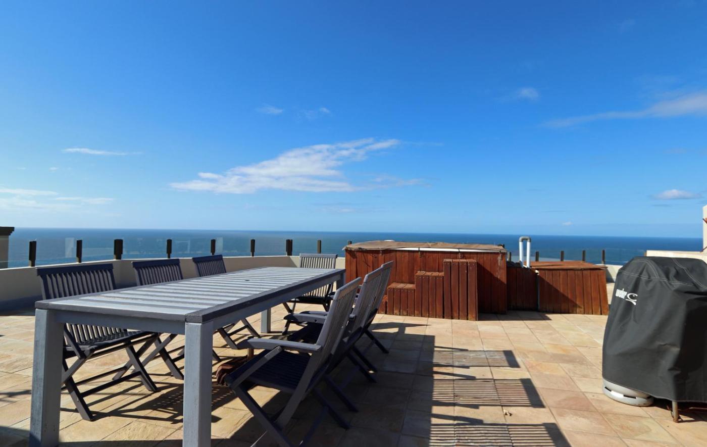 The holiday home features 2 bedrooms, 1 bathroom, bed linen, towels, a flat-screen TV with streaming services, a dining area, a fully equipped kitchen, and a terrace with sea views. The air-conditioned unit at the property features a bath and a dressing room. For added privacy, the accommodation has a private entrance and is protected by full-day security.