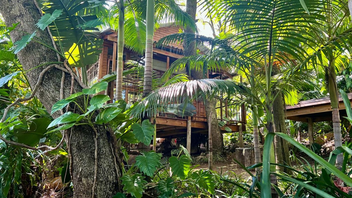 Tree House. Ideal as a honeymoon suite with rustic but romantic decor and fairy lights. Surrounded by glass windows, the Tree House isin a bunch of big, old Jacaranda trees overlooking your own private jungle. With a queen bed and bohemian mosquito net as well as a fully equipped kitchen and bathroom, going out on an open porch TV, Wi-Fi and interesting barbecue area underneath the Tree House. ;