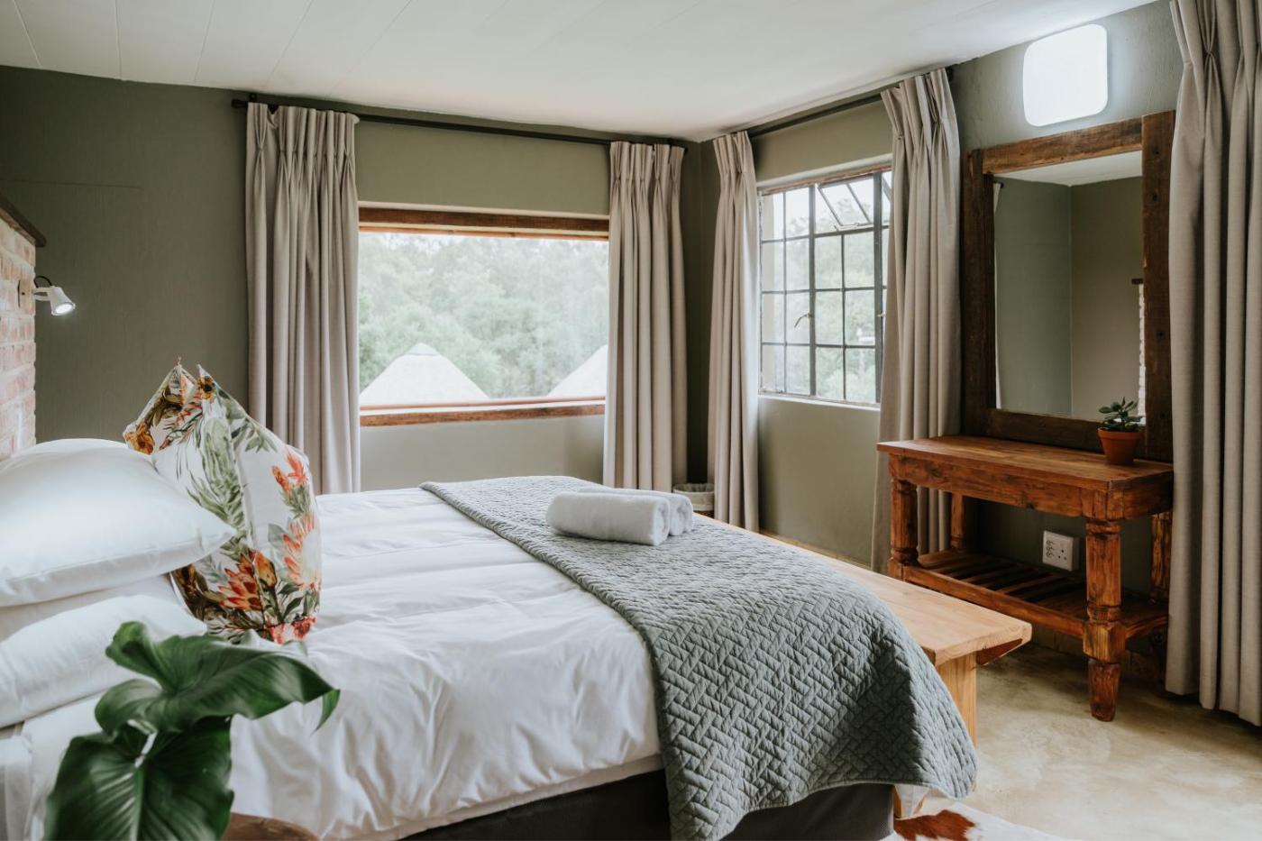 Oupa Huis. The pool with a view and fireplace are the special features of this double room. The double room offers a wardrobe and a tiled floor, as well as a private bathroom featuring a shower. Guests will find a stovetop, a refrigerator, kitchenware and an oven in the well-fitted kitchen. The double room also offers a barbecue. The spacious double room provides a TV with streaming services, a tea and coffee maker, a seating area, a dining area as well as garden views. The unit offers 4 beds.