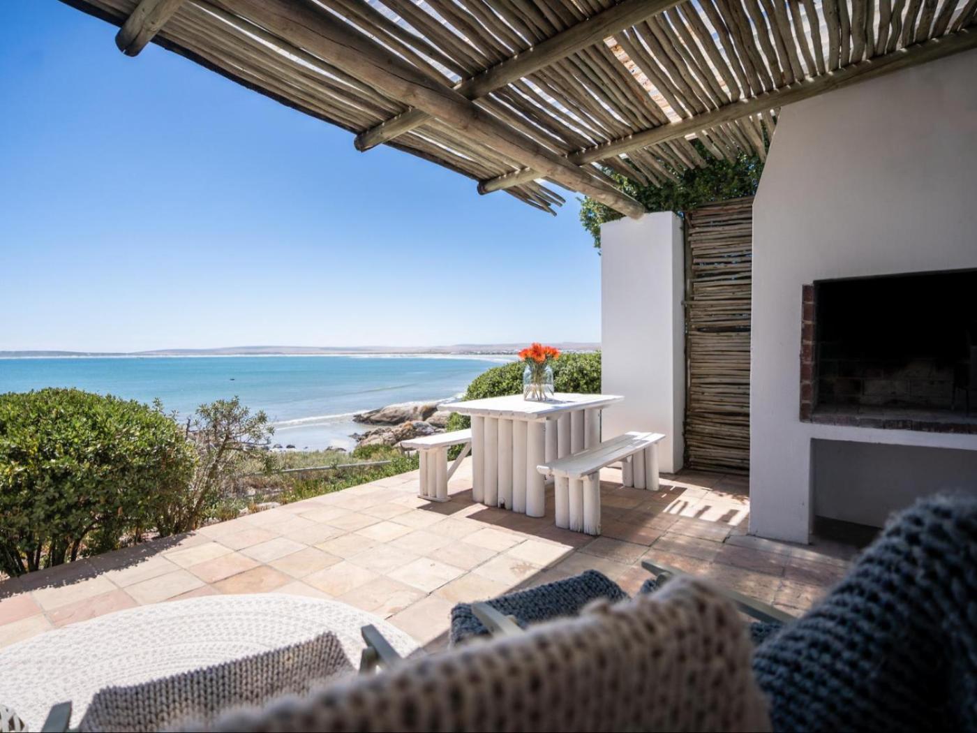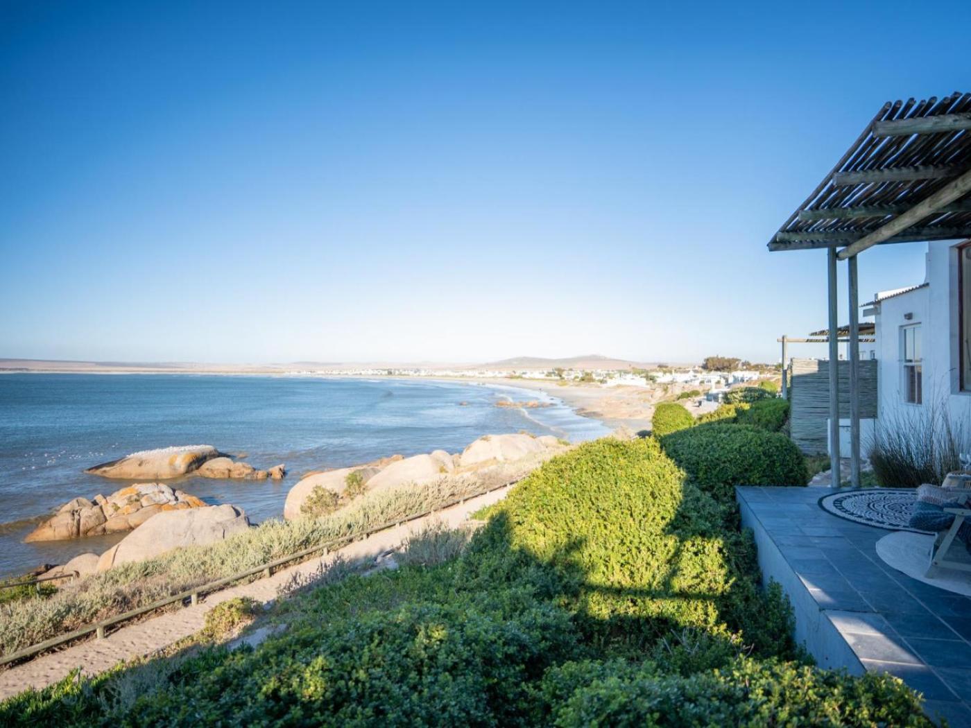 Beach House 2. Enjoy views of the Atlantic Ocean and Paternoster Bay from the private patio of this holiday home This unit has an open-plan living area including a lounge and dining room finished in a rustic, modern style. There is a fully-equipped kitchen with a five-burner gas stove and oven, a refrigerator and coffee machine. The lounge is equipped with a flat-screen TV with limited satellite channels. The master bedroom has an en-suite bathroom with a bath and shower, and the there is a second bathroom with a shower. ;