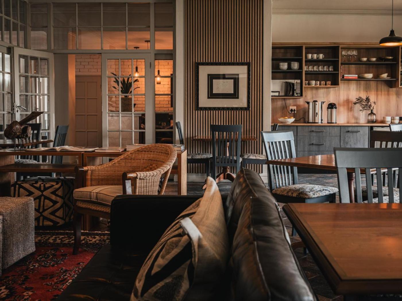 The air-conditioned rooms are fitted with traditional, South African rugs and white linens on the plush beds. Some have a well-equipped kitchen and a seating area.