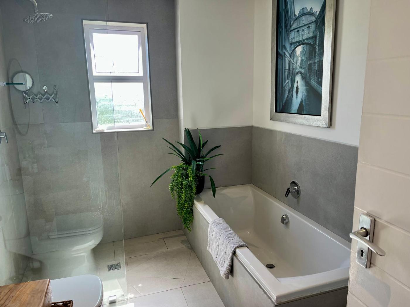 The spacious guest house is equipped with a satellite flat-screen TV. The kitchenette is fitted with a microwave, a toaster and a fridge and there is a private bathroom with a hair dryer and free toiletries. For added privacy, the accommodation has a private entrance and is protected by full-day security.