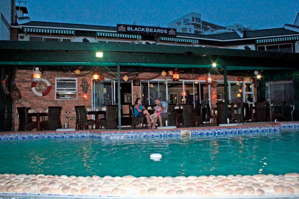Breakfast is served daily and the A-la-carte Blackbeards Restaurant specialises in seafood and offers other extensive options, which include various meat, poultry, vegetarian and Italian dishes . The bar serves a variety of cocktails, wines and beverages.