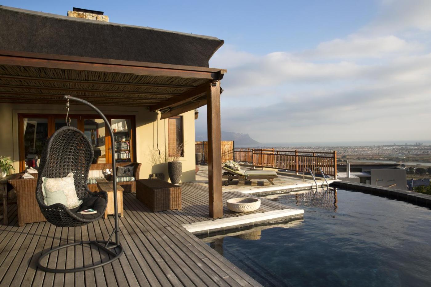 Situated on an eco-estate with a spectacular view of the whole of False Bay and the backof the Cape mountains, 43 On Sandstone features and outdoor pool.