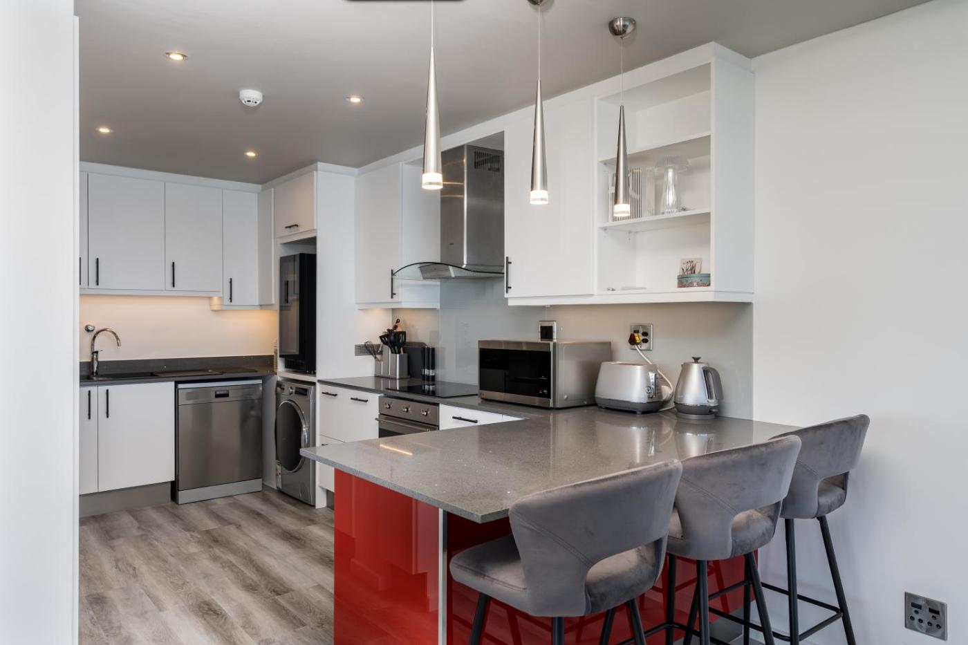 Three-Bedroom Apartment. This apartment features a private pool. This spacious apartment features 3 bedrooms, a kitchen and 2 bathrooms with a bath and a shower. Guests will find a stovetop, a refrigerator, a dishwasher and kitchenware in the well-equipped kitchen. The apartment also comes with a barbecue. The air-conditioned apartment features a flat-screen TV, a washing machine, a dining area, an electric kettle as well as sea views. The unit has 3 beds.