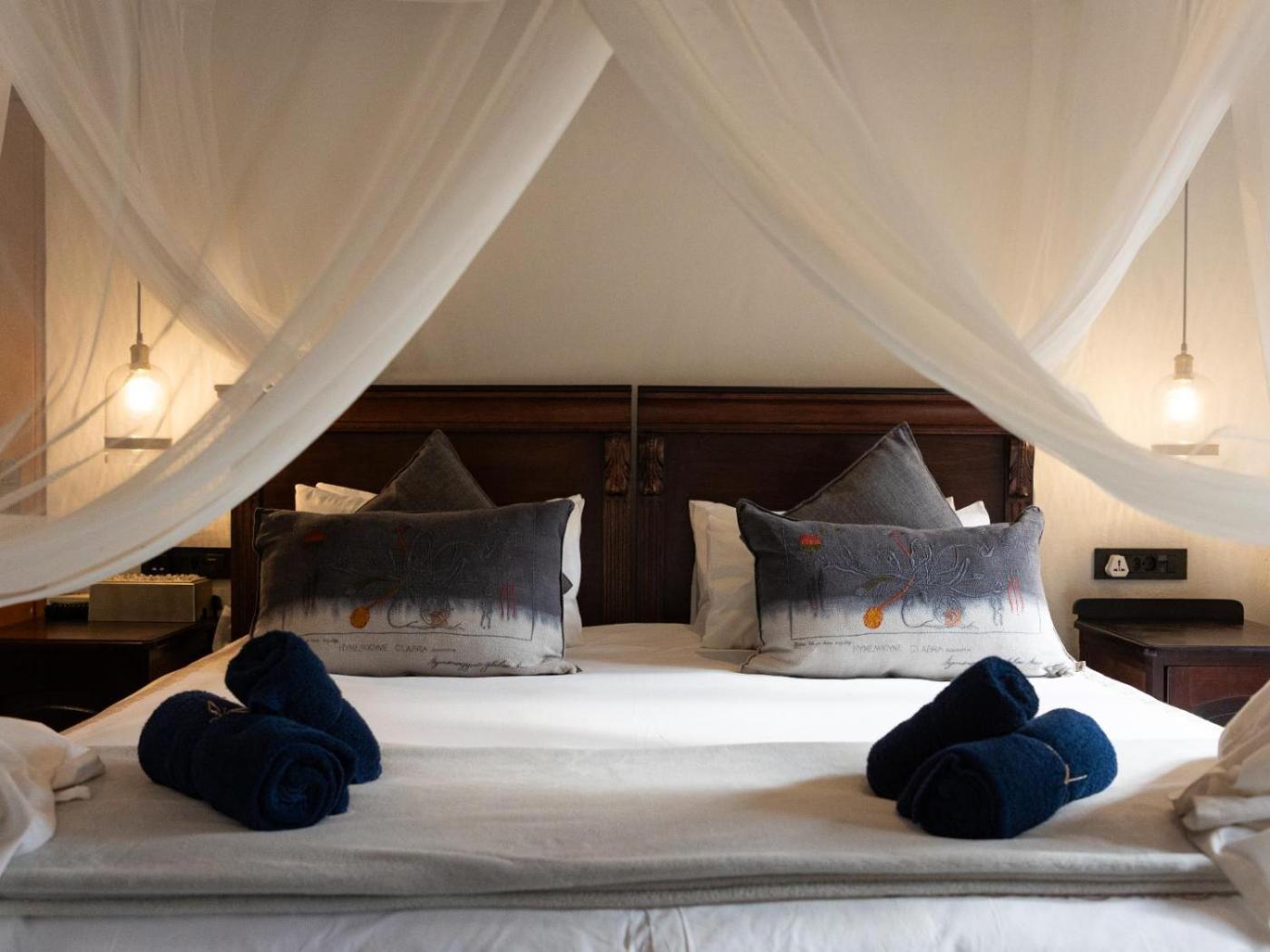 Double Chalet. Located closer to the main lodge, these thatched chalets offer air-conditioning, a patio and a bathroom with shower. The beds are draped with a mosquito net. ;